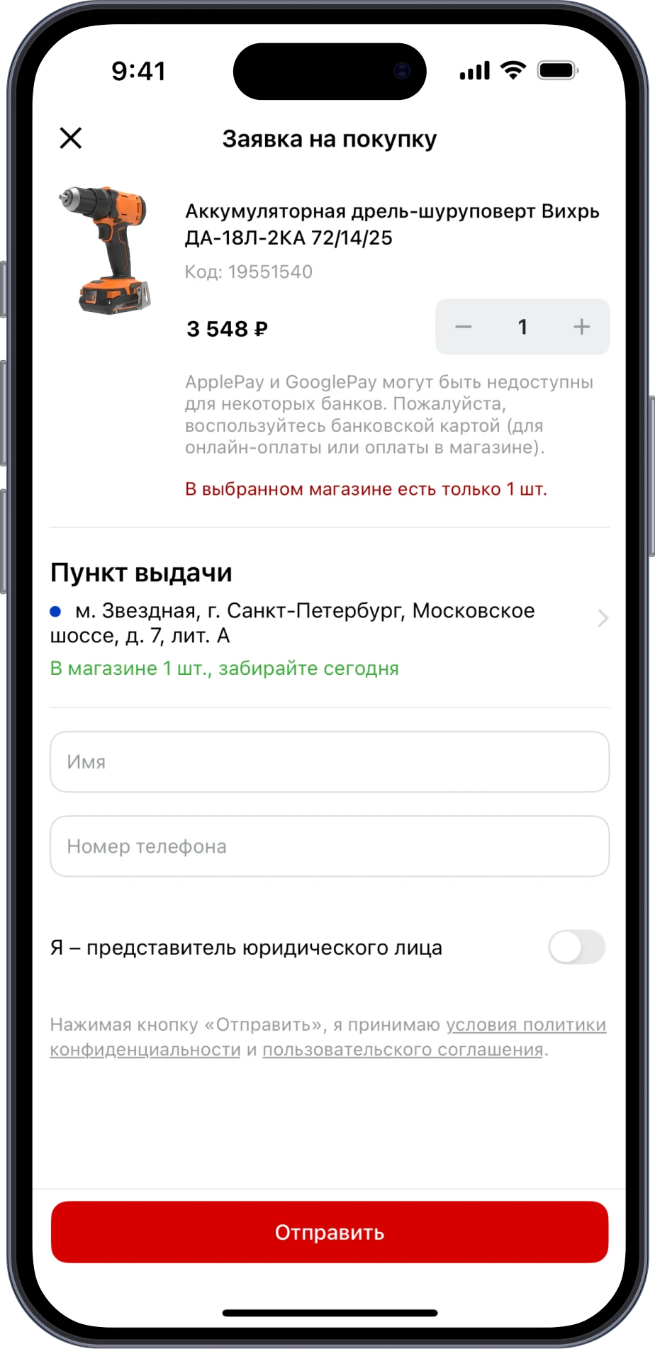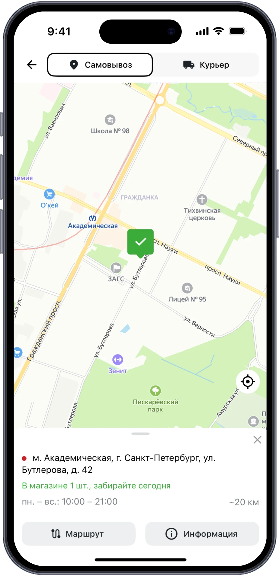 Пользователь сразу понимает, что можно сделать — купить, забрать в магазине или запросить аналог