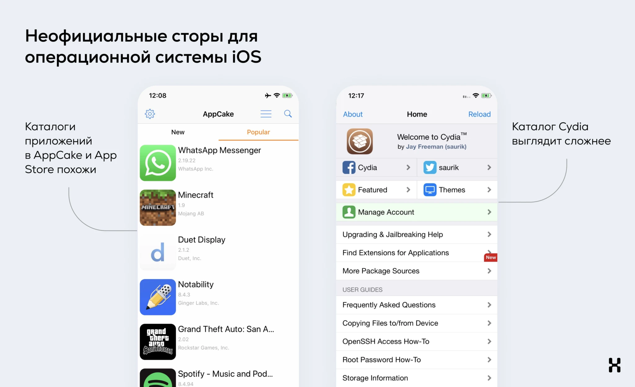 Cydia и AppCake — два самых популярных аналога App Store. В апреле 2022 года Cydia посетили 414 тысяч пользователей, а AppCake — 472 тысячи.