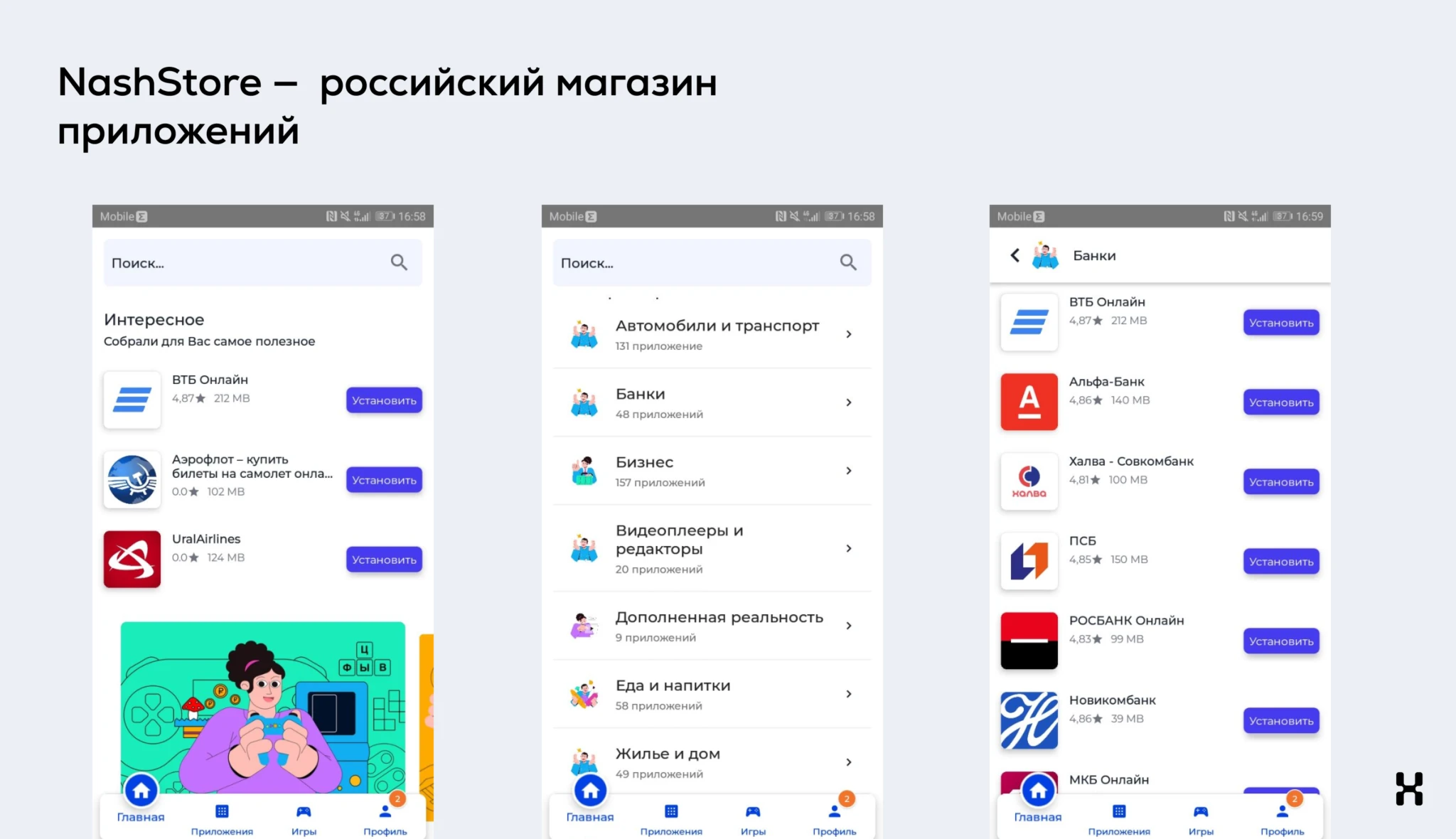 В мае 2022 года АНО «Цифровые платформы» запустили свой магазин приложений — NashStore. Разработчики могут подать заявку на публикацию в каталоге: для этого нужно заполнить форму регистрации и рассказать о приложении и его статистике. Мы протестировали и показали приложения, которые есть в новом сторе в нашей статье.