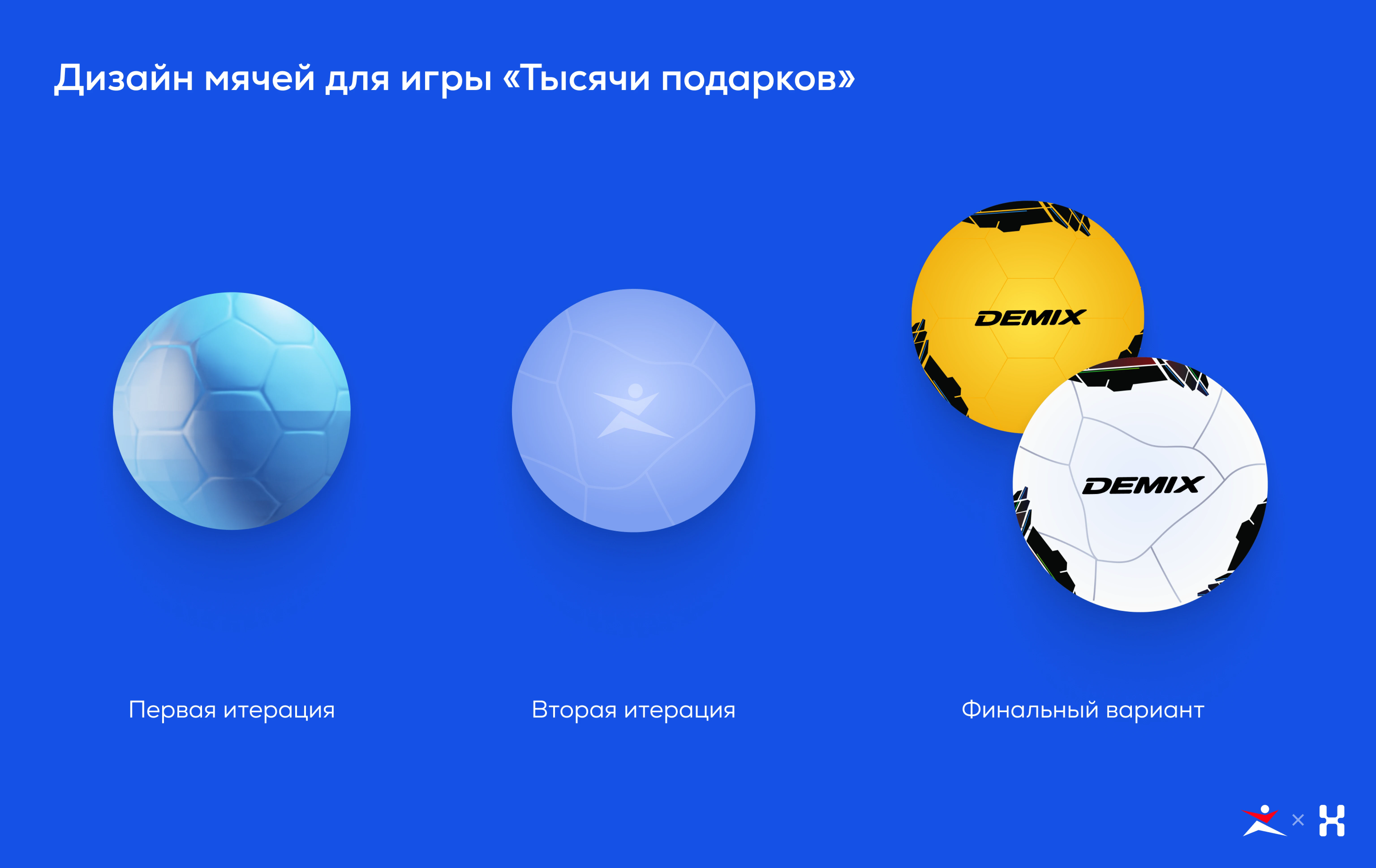 Колеса фортуны в виде мячей. За выполнение заданий пользователь получает мячи, которые раскручиваются и выдают подарки. Мы сделали их в двух видах — белые и золотые.