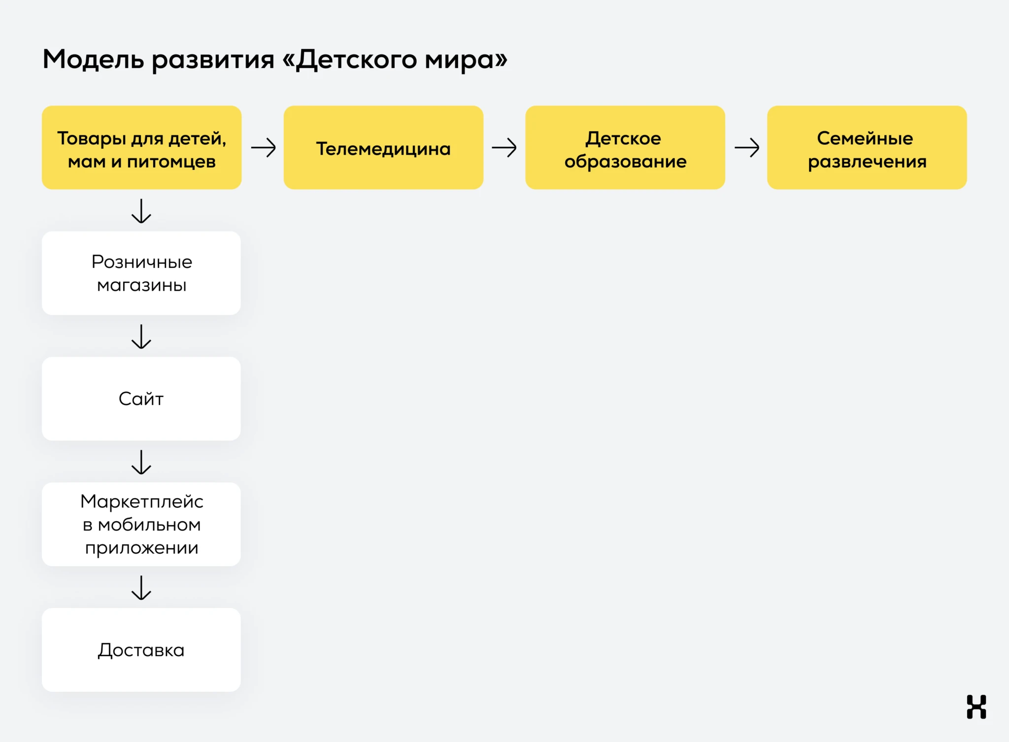 Для некоторых задач «Детский мир» уже разработал решение. Например, в приложении появились разделы с товарами для мам, животных, а также техника для дома. Клиенты «Детского мира», которые раньше искали и покупали эти предметы в других магазинах, могут остаться внутри экосистемы и решить свои смежные задачи. Например, записать ребенка на развивающие занятия, забронировать тур на каникулы или обратиться за консультацией к доктору.