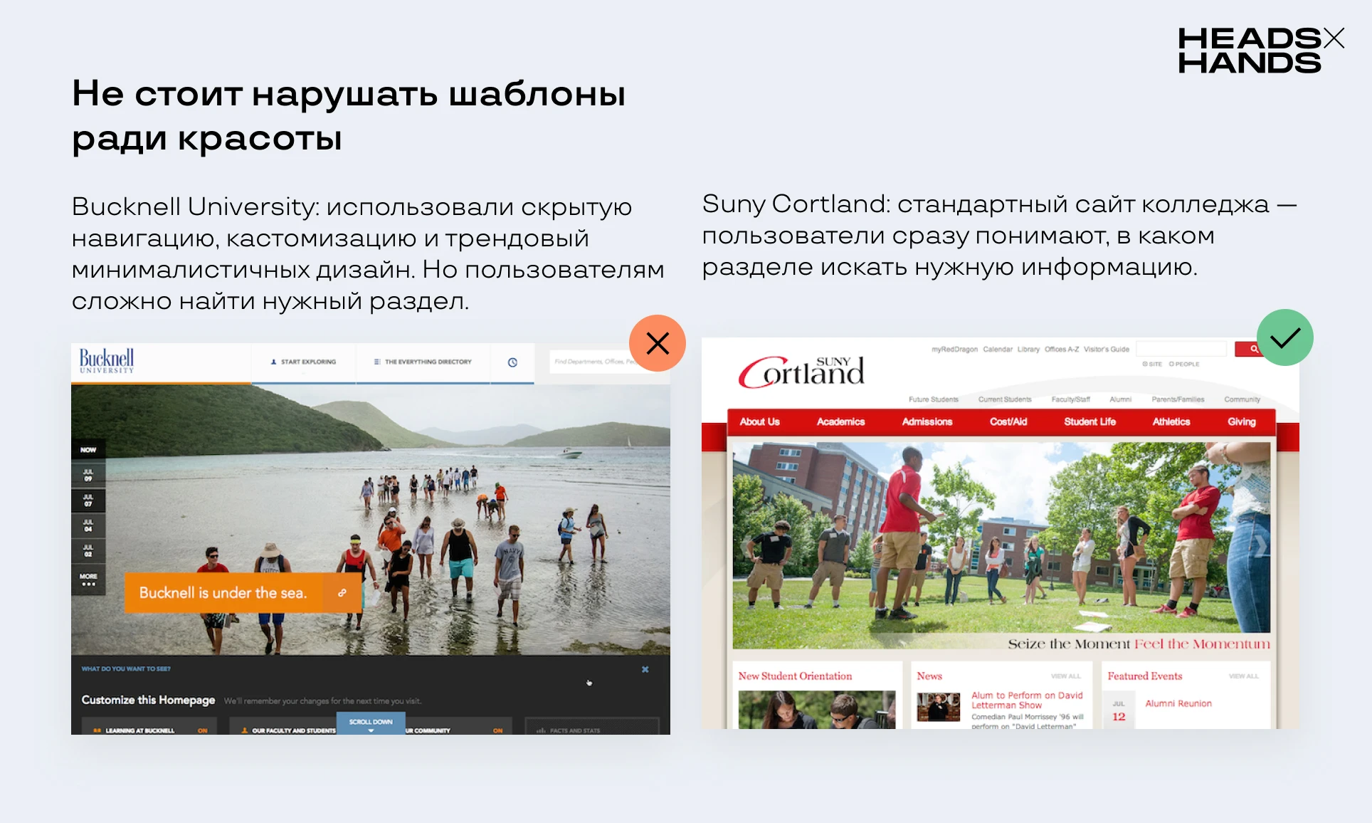 Можно не придерживаться шаблонов, если это улучшит пользовательский опыт.