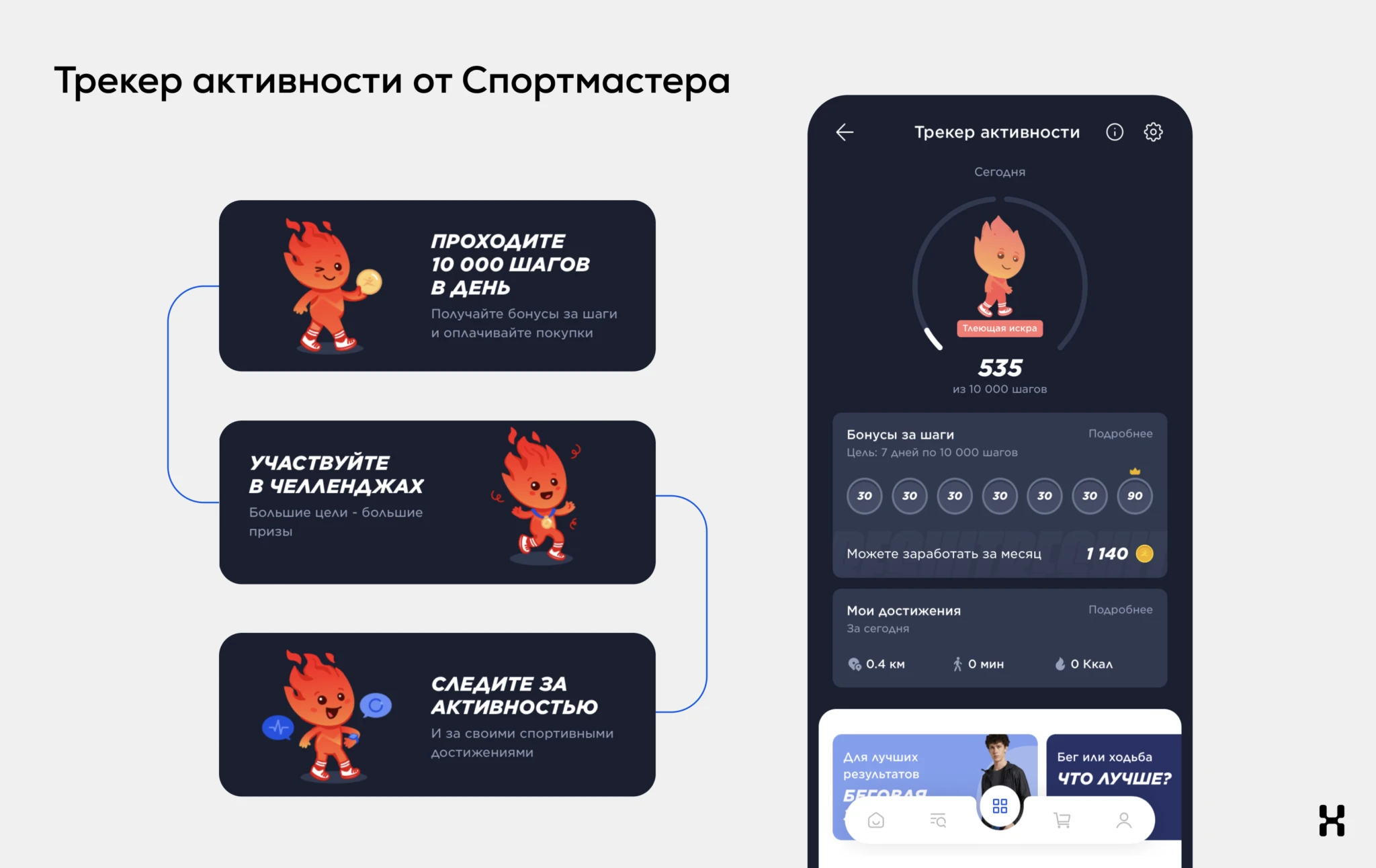 Польза для клиентов. Сервис мотивирует пользователей ходить больше, соревноваться с участниками шаговых челленджей и получать бонусы Спортмастера за активность.