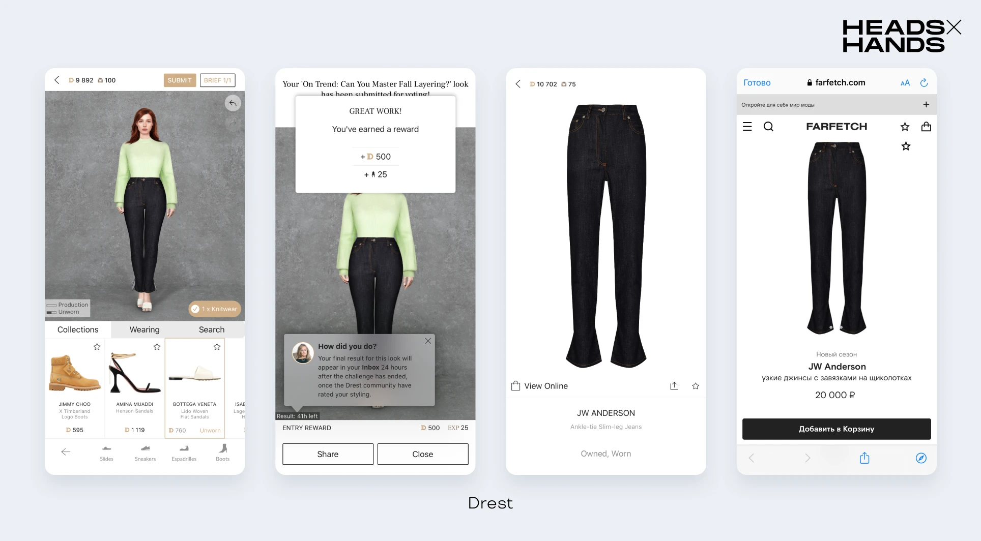 Вещи из игры Drest можно найти и купить на маркетплейсе Farfetch. Также игра выпускает челленджи в партнерстве с брендами.