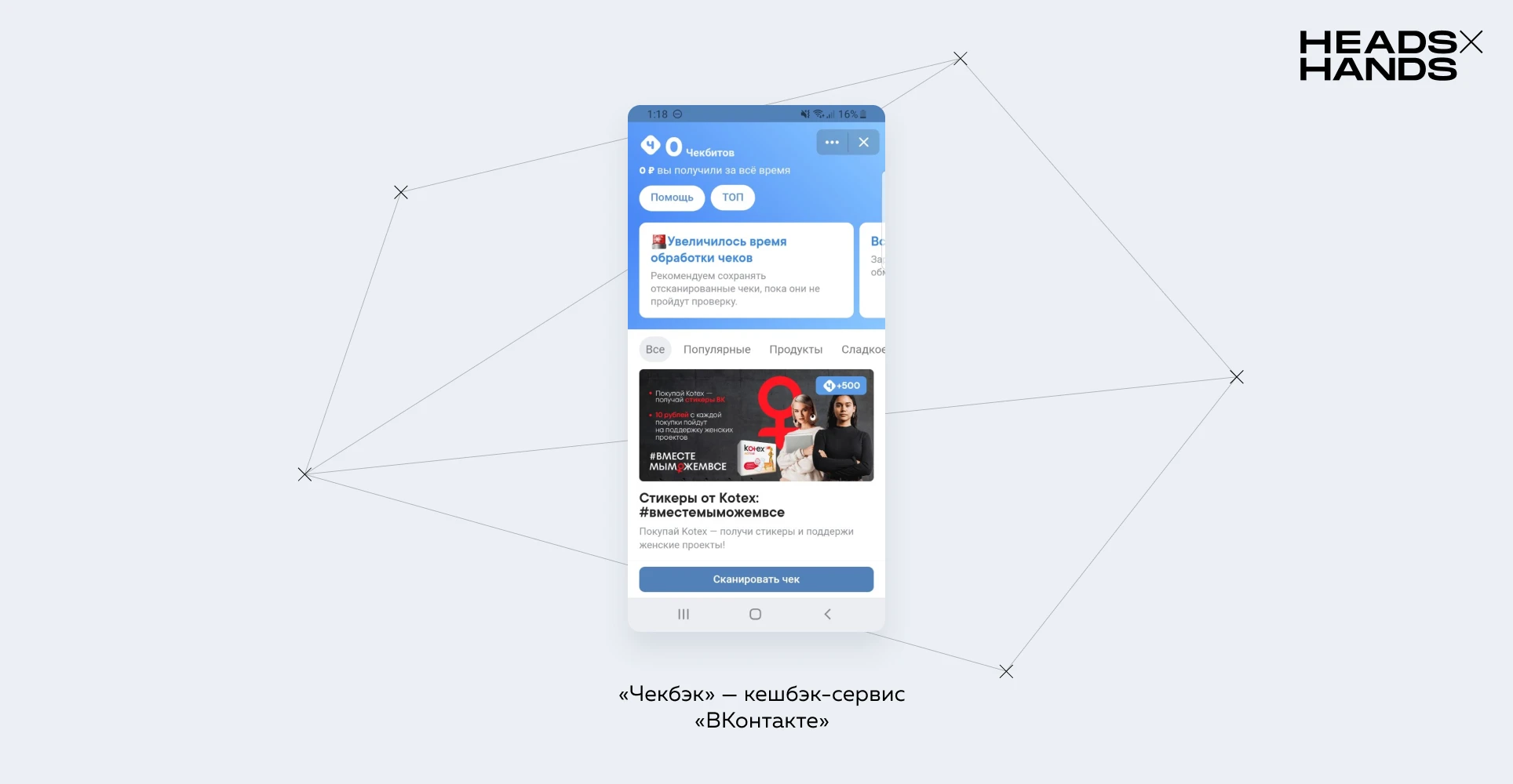 К самостоятельным мини-приложениям внутри соцсети относится кешбэк-сервис «Чекбэк».