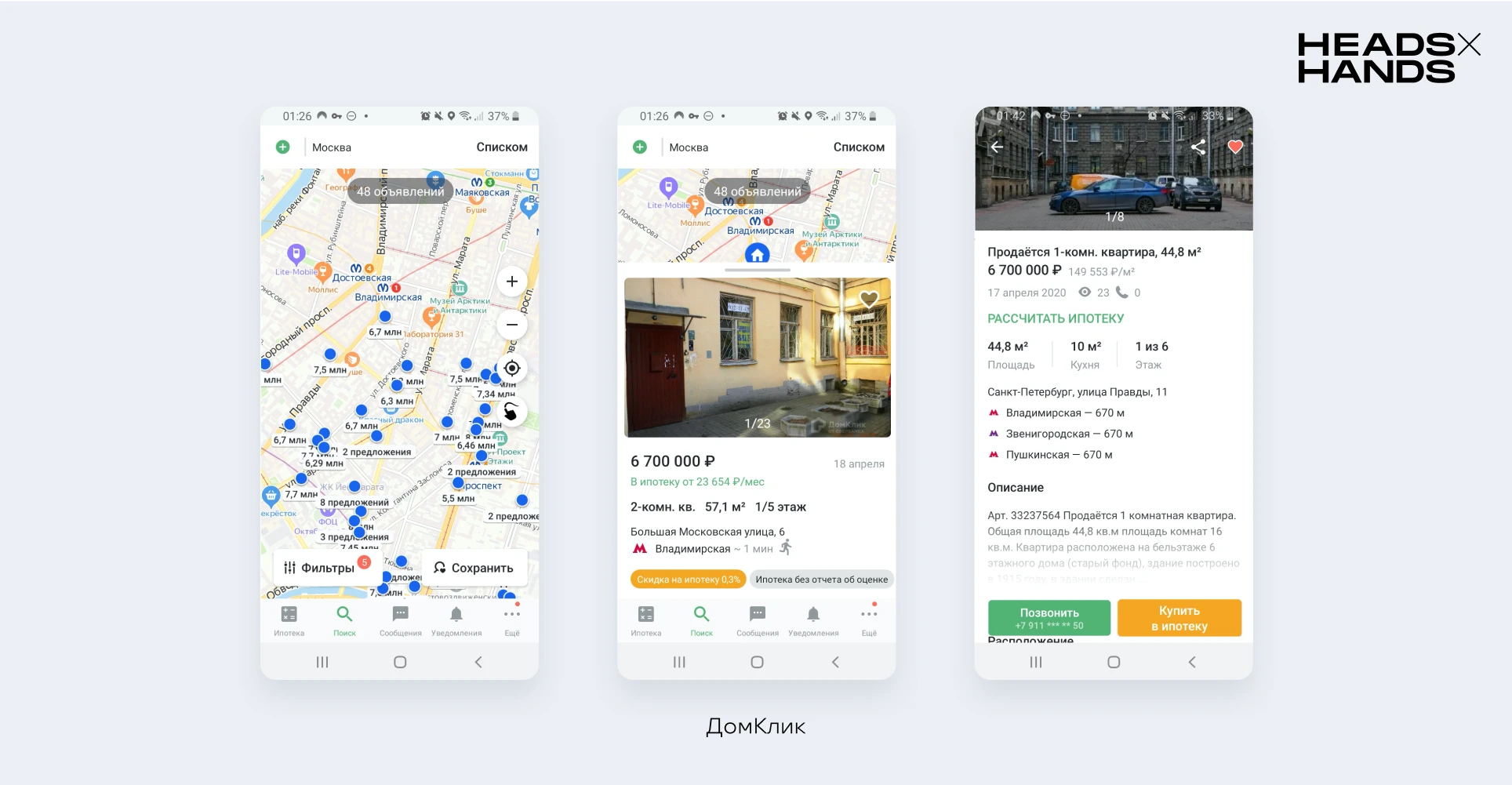 «ДомКлик» предлагает листинг объектов недвижимости для покупки и аренды. Но вместо привычного алгоритма: нашел квартиру, связался с владельцем или риелтором, договорился о просмотре — стремится закрыть больше потребностей пользователя на платформе.