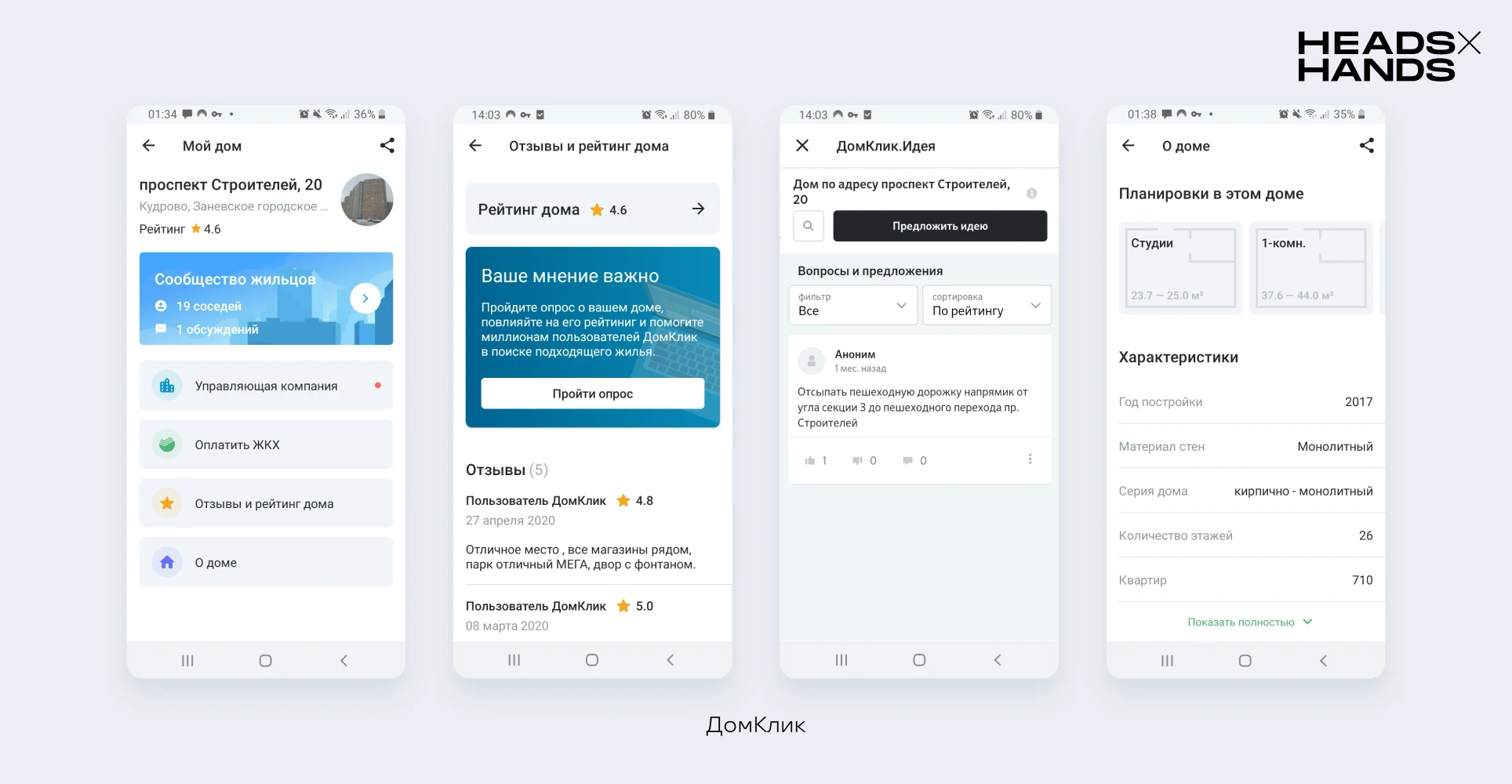 Сервис предоставляет информацию не только о квартире, но и о доме: его характеристики, рейтинг и отзывы жильцов. Жильцов в экосистему привлекают с помощью создания сообществ внутри инструмента «Мой дом».