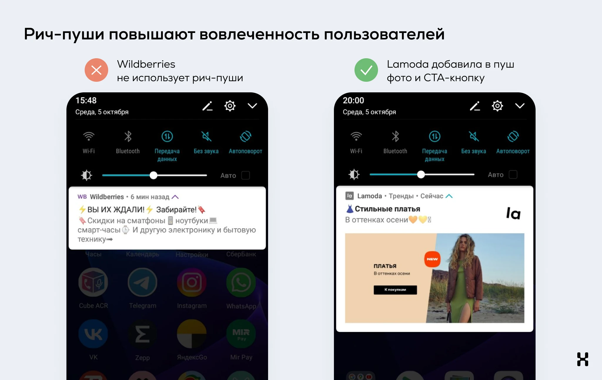 Подробнее о том, как вовлекать пользователей через push-уведомления в мобильном приложении, читайте в нашей статье.