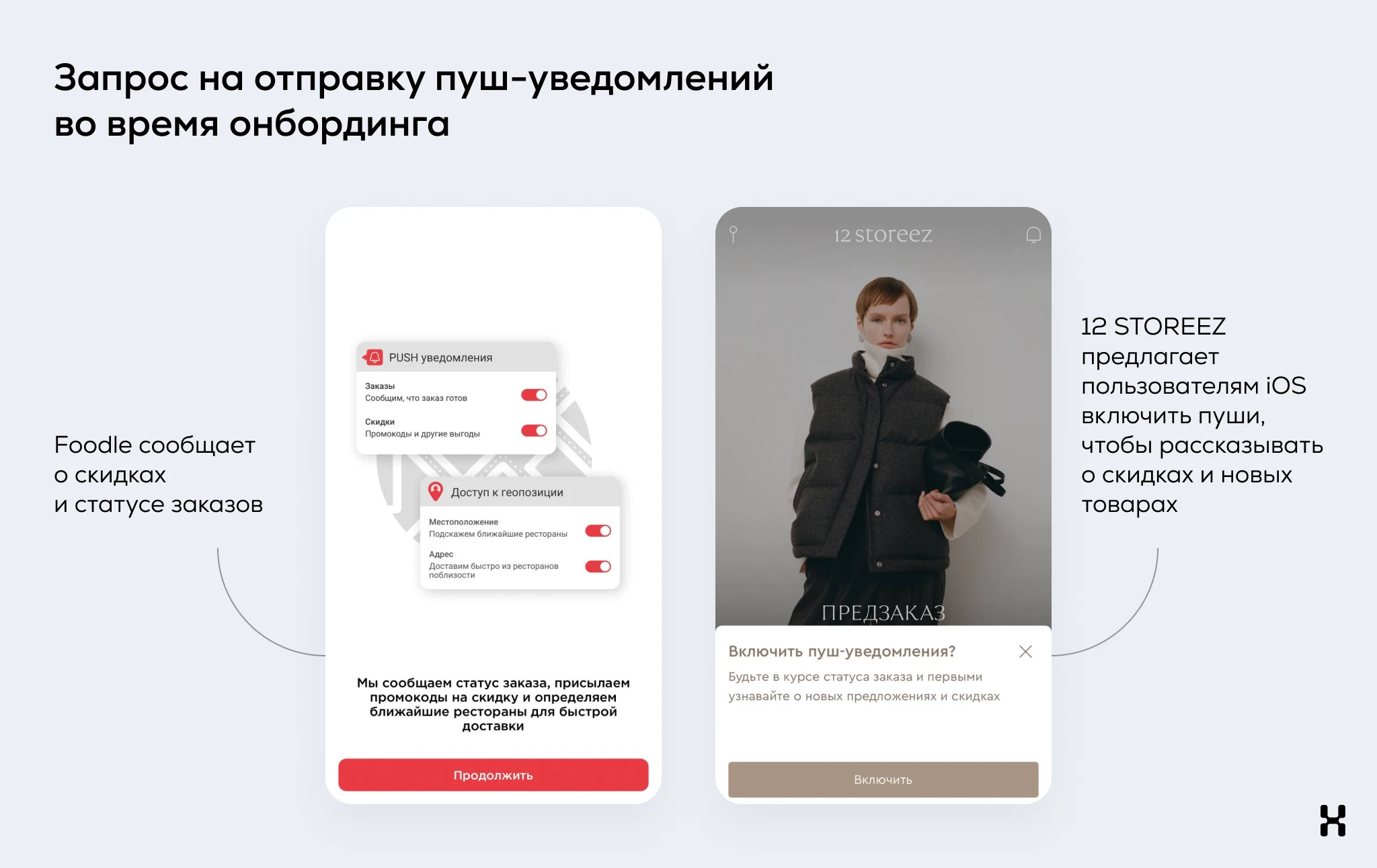 Пуши помогают владельцам приложений достучаться до пользователя: завершить сбор корзины, повторить свой заказ, прочитать сообщения или пополнить баланс.