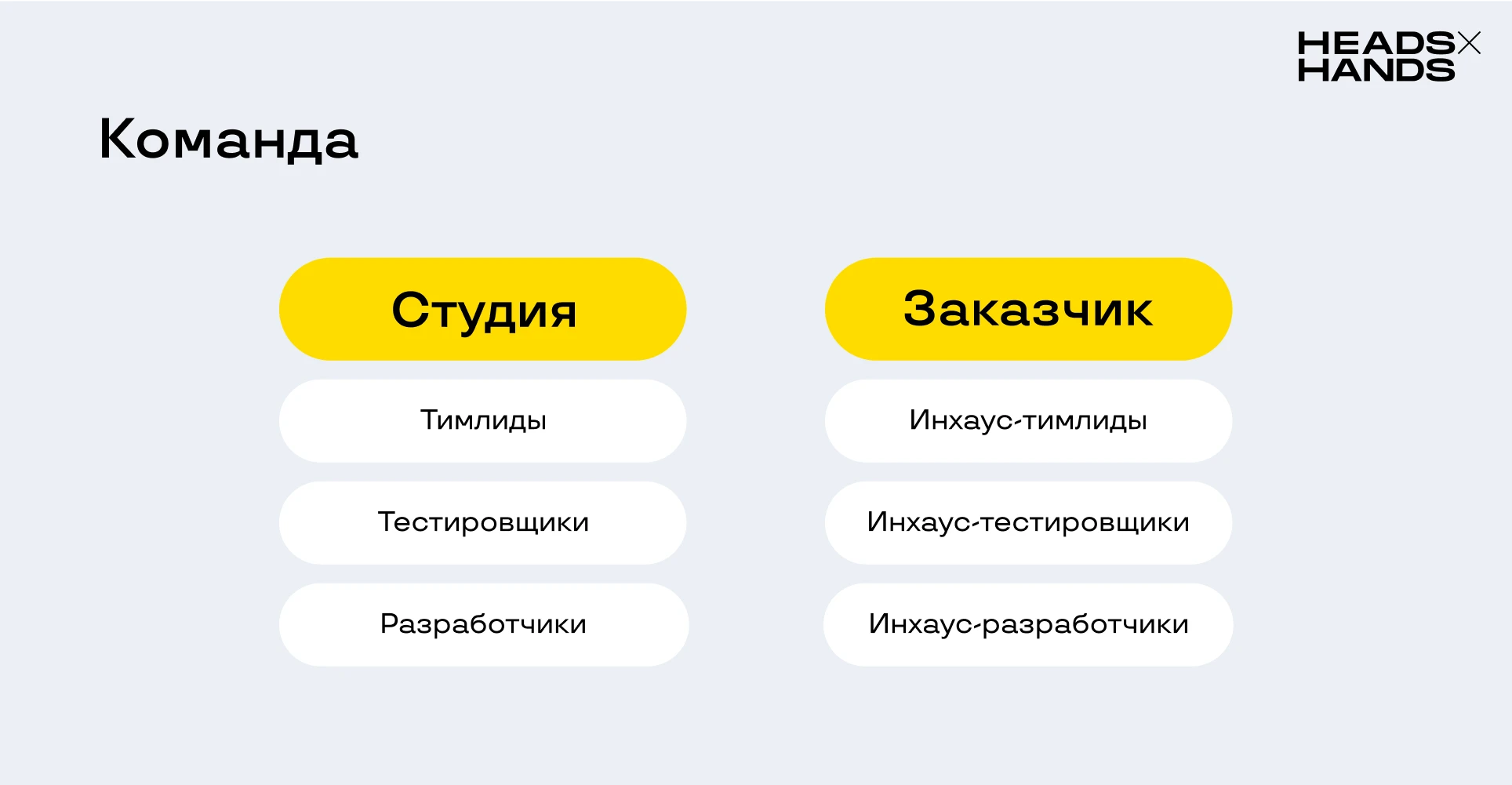 Мы передаем проект команде разработки заказчика в несколько этапов, чтобы сделать переход бесшовным. При необходимости помогаем в найме и формировании команды. Ниже в деталях рассмотрим, как организован этот процесс в Heads and Hands.