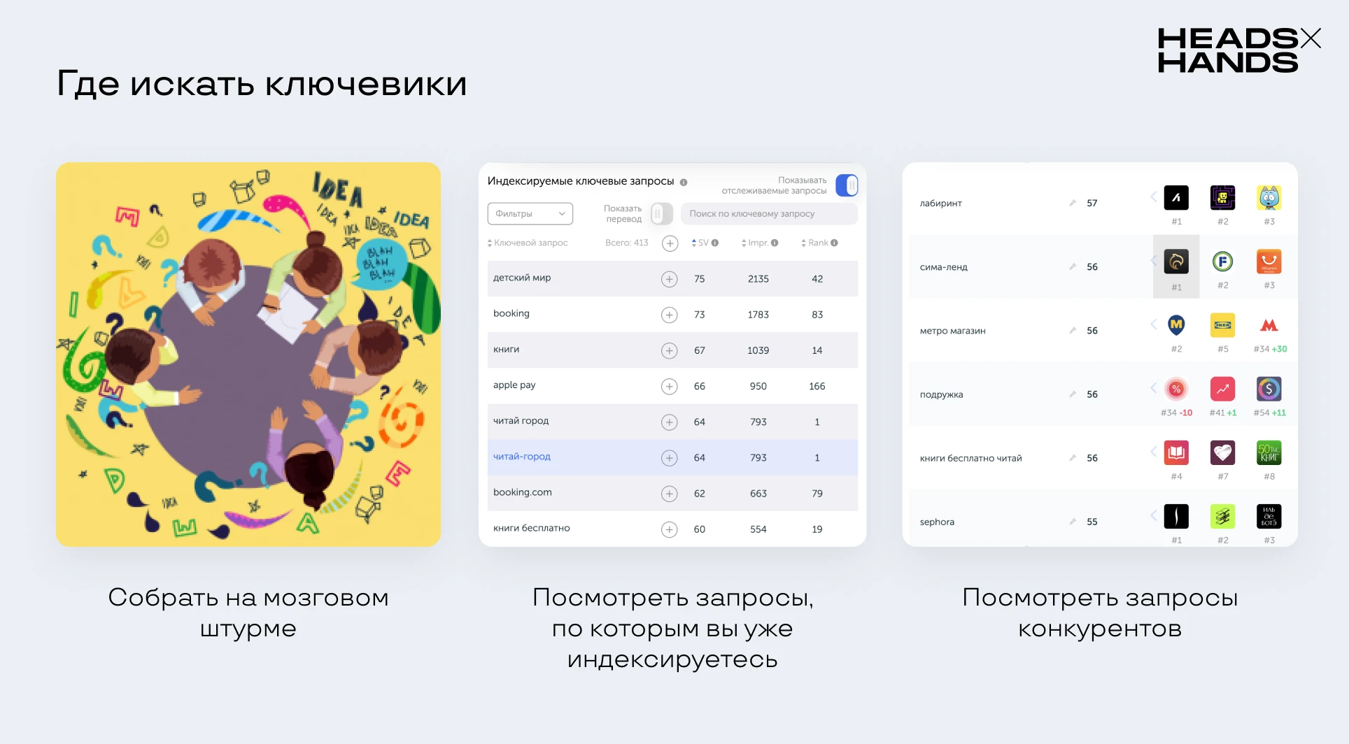 Брейншторм — самый простой и старый метод сбора ключей. Нужно подумать, по каким запросам вас могут искать. Для это необходимо сформулировать, о чем ваше приложение, какие проблемы оно решает и кто потенциальные пользователи.