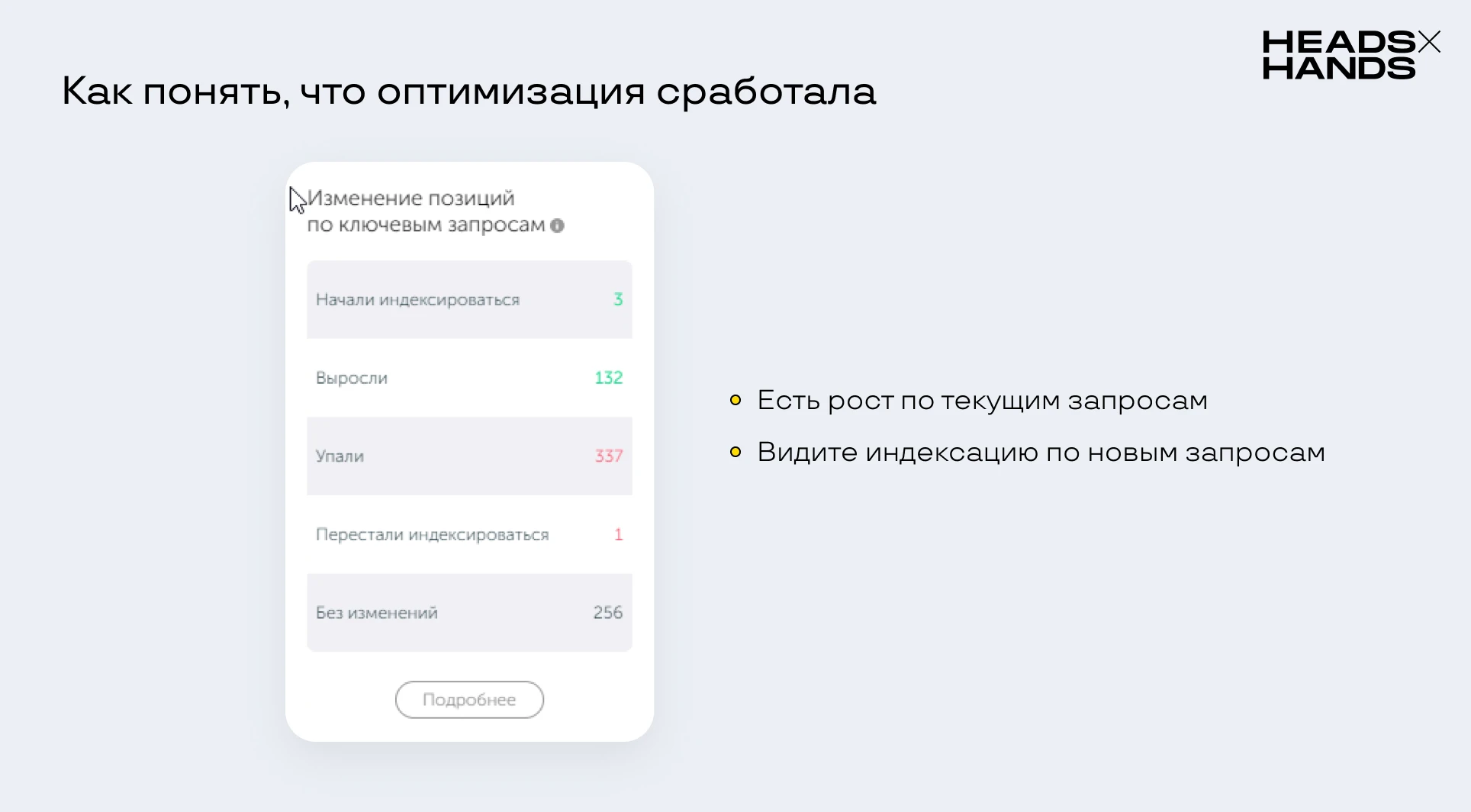Оценивайте результаты после каждого обновления. Если видите рост по текущим запросам и то, что новые запросы проиндексированы, то работа проделана не зря, двигайтесь к следующей итерации.